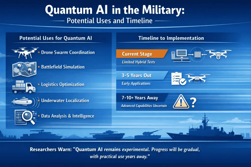 - The researchers identify potential uses for quantum AI in areas such as drone coordination, logistics optimization, battlefield simulation and data analysis, while emphasizing that current hardware remains noisy and experimental.